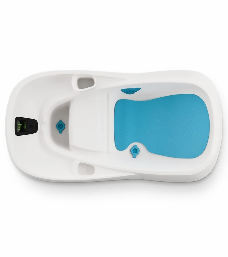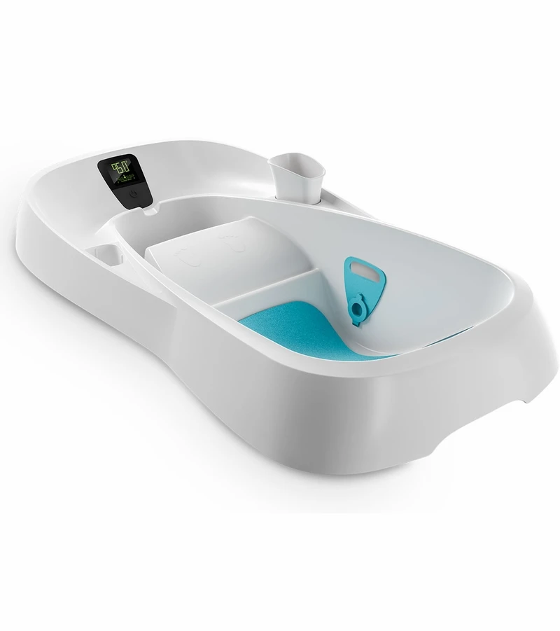 The 4moms infant tub allows clean water to flow in, while dirty water flows out. With its built-in color-coded temperature gauge, it’s easy to get your baby’s bath water to a safe and comfortable temperature.