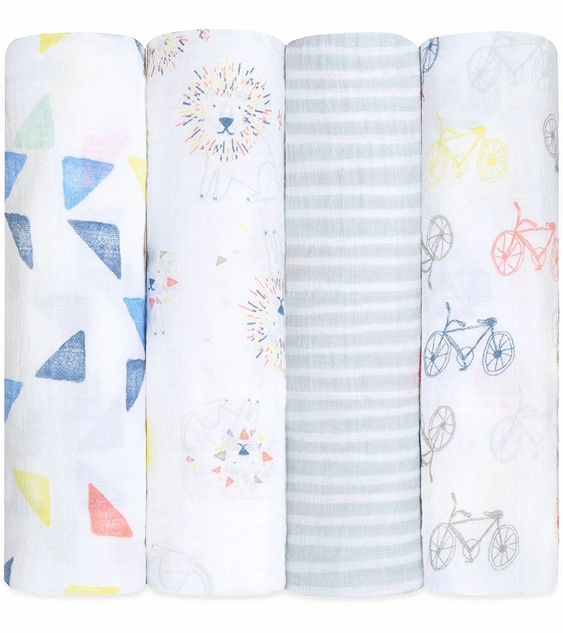 - Includes four 47″ x 47″ muslin swaddles