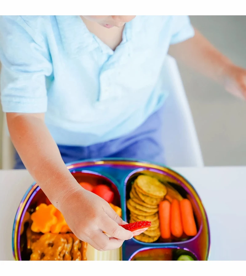 Pediatrician-mom designed. Kids are visual learners, and the modular nature of our plates creates a visual guide to teach the importance of healthy variety and portions at any age. Plus, our plates have large wells and can double as trays or charcuterie boards.