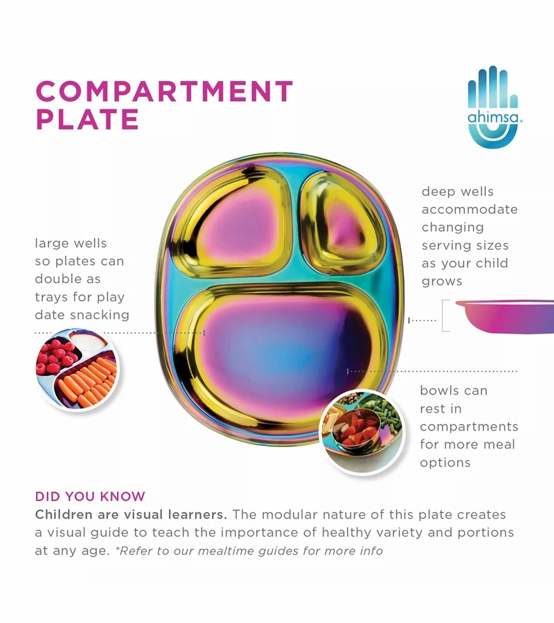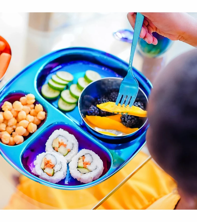 - It’s stainless steel so unlike plastic – harmful chemicals won’t transfer into your child’s food. Our dishes are free of BPA (and all bisphenols), PVC, Phthalates, Melamine & Lead.