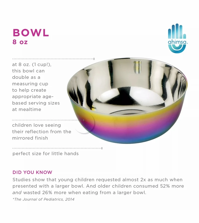 - Bowl: 8 oz to easily measure age-appropriate serving sizes – also great for snacks, side dishes, dips and more.Â