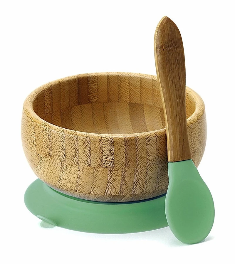 Bamboo Stay Put Suction Baby Bowl + Spoon