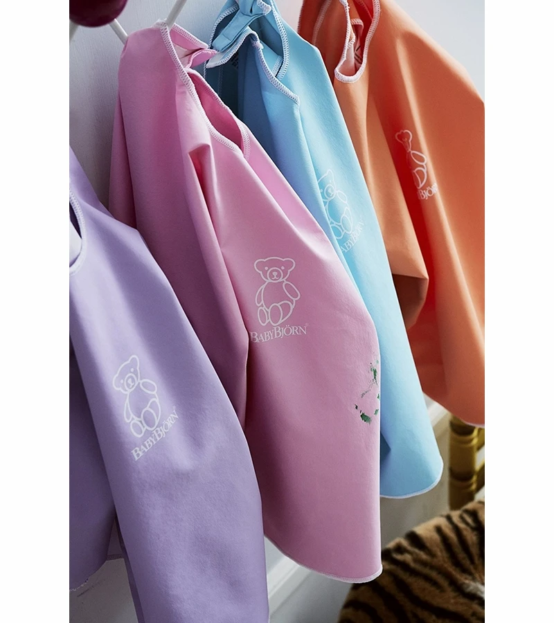 Lets get messy! BABYBJÖRN Long Sleeve Bib covers your childs front, back and arms to protect their clothes. It allows your child to move freely, and is perfect for meals and messy play. The bib is made from a soft, pliable material that breathes and is very easy to clean. Suitable for children from the age of eight months.