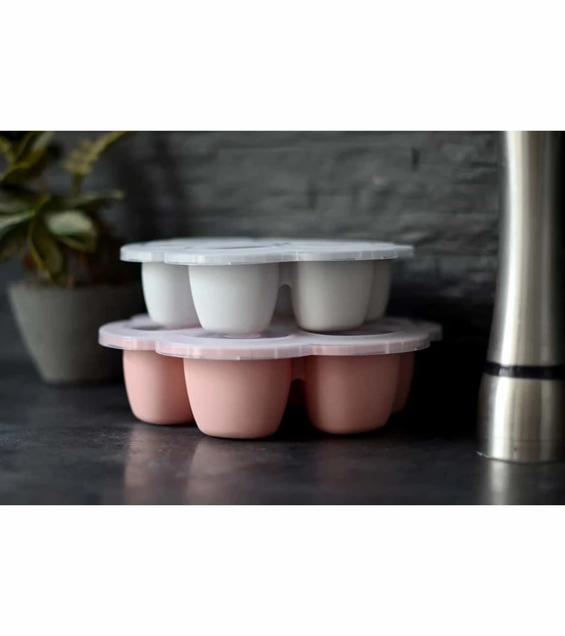 BEABA Multiportions is designed for freezing and storing a la carte foods for baby. Multiportions is comprised of six individual 5 oz portions. Made from high quality, platinum grade silicone, a single portion of frozen food is easy to pop out. These lightweight storage containers are freezer, microwave, oven and dishwasher safe. This product is the perfect complement for Babycook allowing you to make the freshest and best food for baby ahead of time.