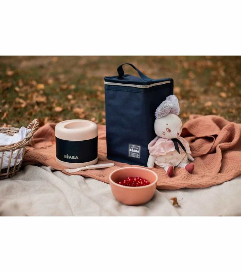 - Double wall, isothermal, keeps foods cold for 7 hours (stewed fruit) and the meals warm for 6 hours (puree or similar)