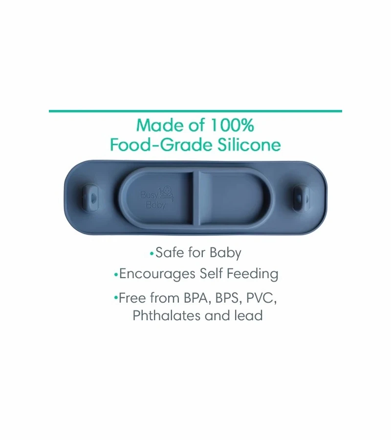 Made with food-grade silicone this placemat contains no Phthalates, BPA, BPS, or PVC. That means this product is safe for your baby to play on, eat off, and do everything else babies do while exploring their surroundings.