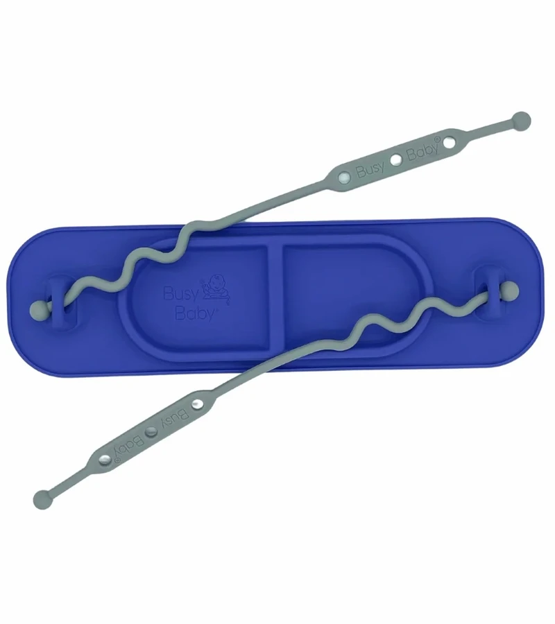 This children’s placemat comes with two light grey toy straps to keep toys within your child’s reach and free from germs. No longer do you need to constantly pick up your child’s toys as they can now be safely attached to the Busy Baby Placemat. Using