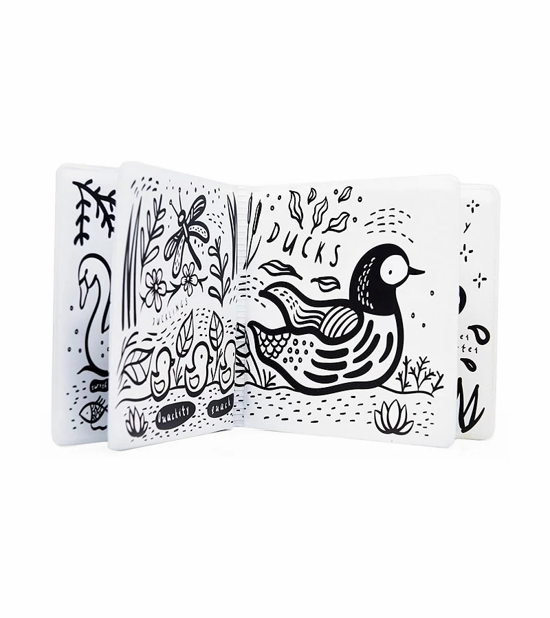 Frog paddles in puddles and Duck dives under water, but how do you take a bath? Babies will delight in exploring this underwater world at bathtime. Meet new faces and watch the artwork come to life when immersed in water, revealing beautiful colors. Softly shaped pages make it easy for little fingers to hold.