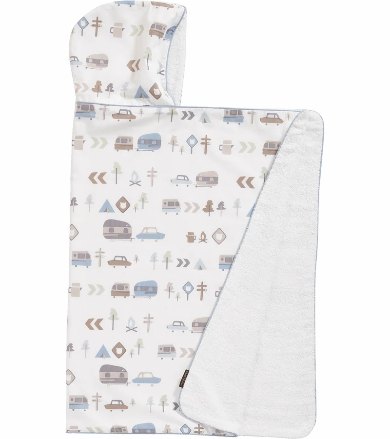 Featuring a young-adventurer motif and lined with plush and absorbent cotton terry, the Canyon Hooded Towel is a fun addition to the nightly bath routine. Generous in size, the hooded towel fits infants through school-age kids. Made of 200 thread count cotton percale.