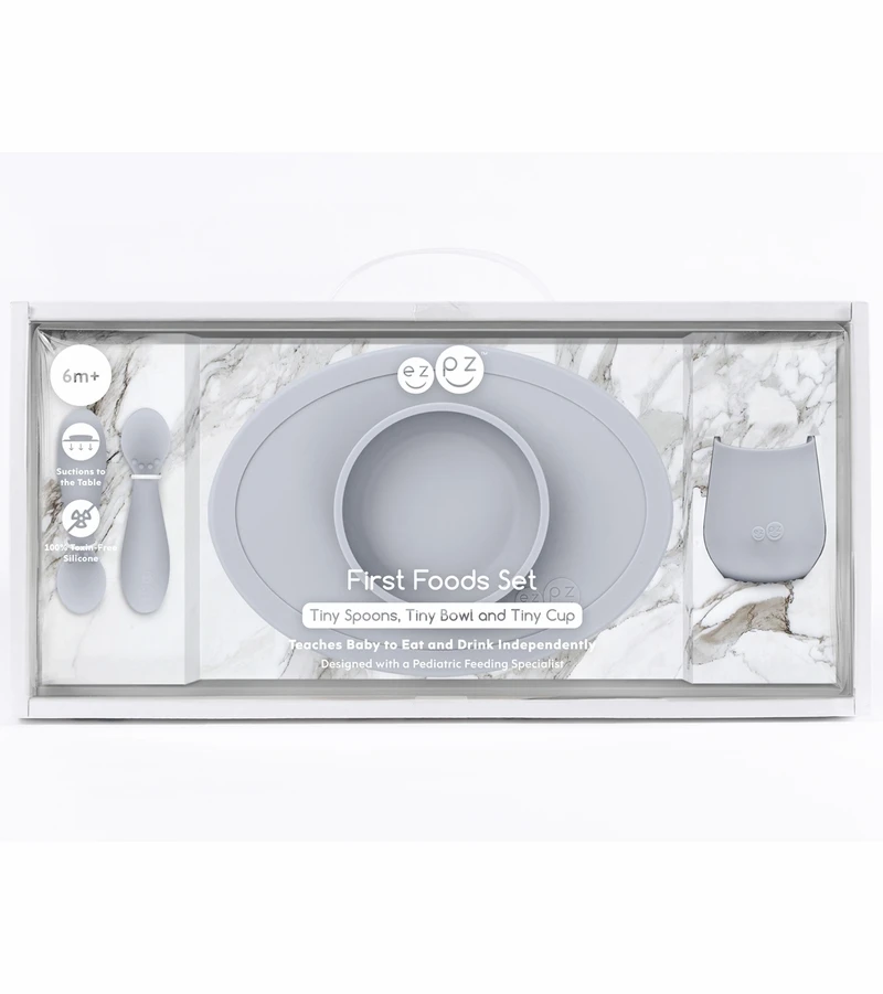 Most parents introduce first foods to their baby at 4 to 6 months of age. This experience can be fun, but it also can be messy, stressful and overwhelming. With the First Foods Set ezpz provides all of the developmental tools you need to set baby up for mealtime milestones – plus calm and confident parents!