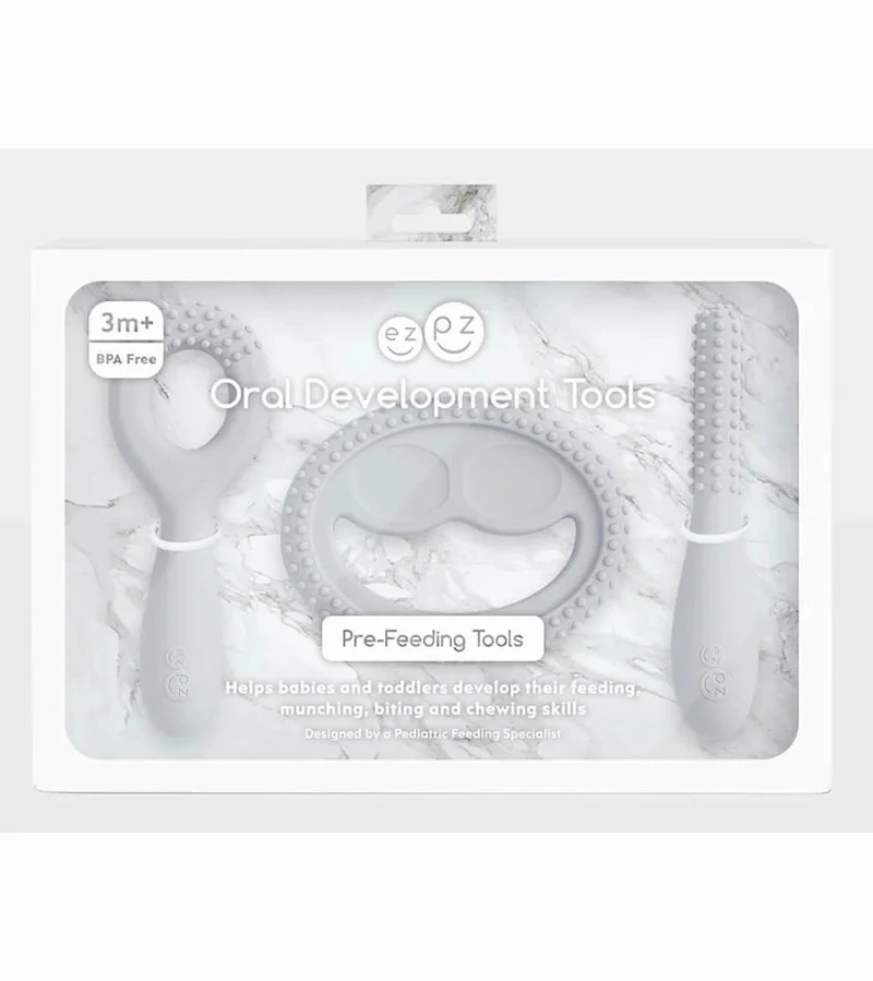 EZPZ Oral Development Tools are sensorimotor devices designed to help babies and toddlers practice their feeding, munching, biting and chewing skills. Each set includes 3 pieces (Loop, Smile and Stick Development Tools).