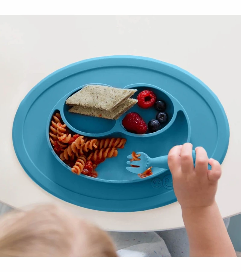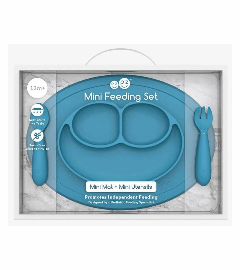 As your infant transitions to toddlerhood, they are ready to start practicing new mealtime milestones. They are eating a balanced meal with different food groups and are learning how to eat with a spoon (scooping) and fork (piercing). With the Mini Feeding Set (the Mini Mat, Mini Spoon and Mini Fork) ezpz provides all of the developmental tools you need for independent mealtime with your toddler.Â