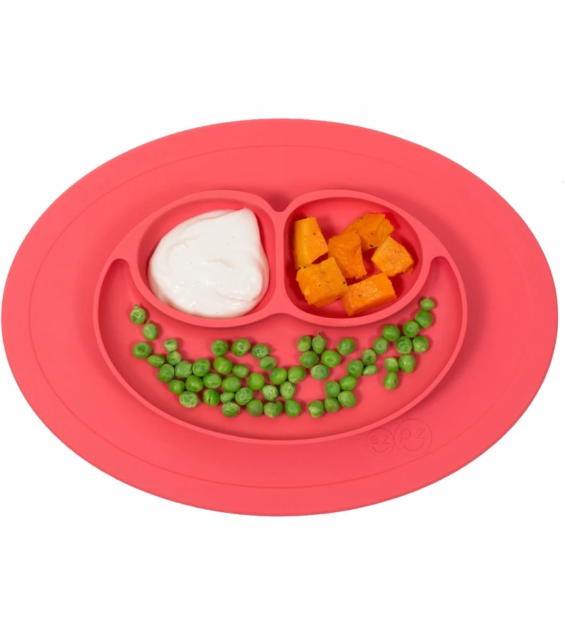 Like all of ezpz’s products, the Mini Mat is an all-in-one placemat + plate that suctions to the table. The mat is made from 100% food-grade silicone that is BPA, PVC and phthalate free. Designed for infants / toddlers 4+ months.