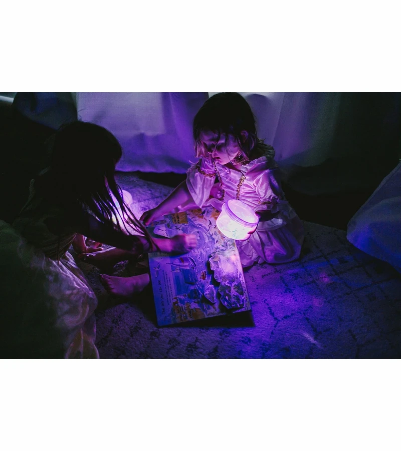 Glo Pals are liquid-activated, meaning they only work when water is in the bath tub or in a container. Draw a bath or fill a container with water, drop the Pals in, and watch them light up! Each Pal has a face and a different personality, and when placed in liquid, the faces will project onto their surroundings, making for fun interactions.