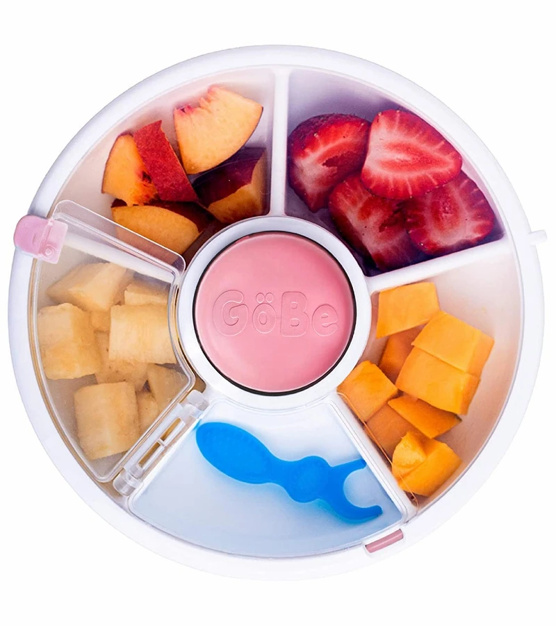 The GoBe Snack Spinner is the only spill proof snack container that allows your child to choose between five different snacks at once! With the push of a button, your child can jump from snack-to-snack, all while reducing spills and mess! More snacking variety for them, less mess for you.