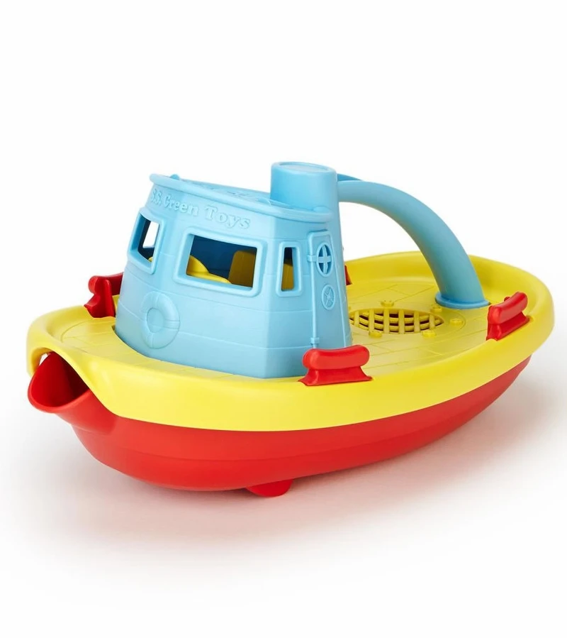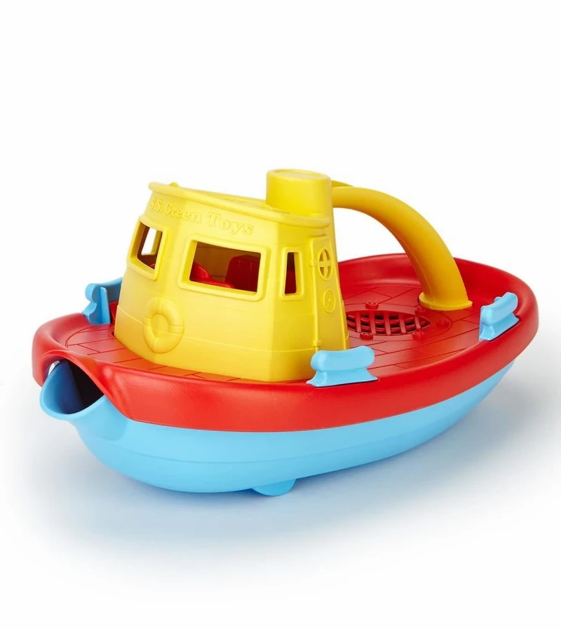 Embark on a cruise across the bathtub. Navigate the wading pool. Even splash around in the occasional mud puddle. There’s no end to the Good Green Fun younfg sailors can have with the Green Toys Tugboat. This colorful craft floats great, and has a wide spout to scoop and pour water. Made in the USA from 100% recycled plastic milk containers that save energy and reduce greenhouse gas emissions, our trusty Tugboat is both good for the earth, and – most importantly – safe for the busy little folks who play there.