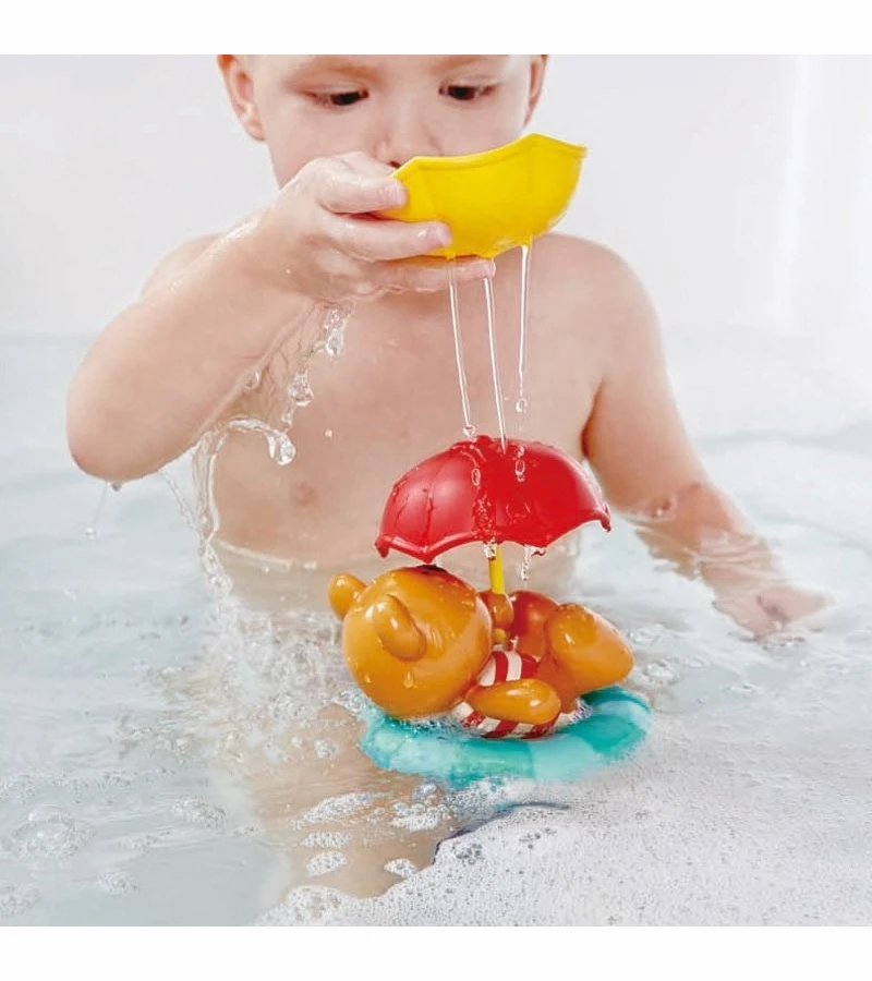 These colorful umbrellas stack on top of a teddy bear base, perfect for playtime and learning in the tub. Ages 12+ months.