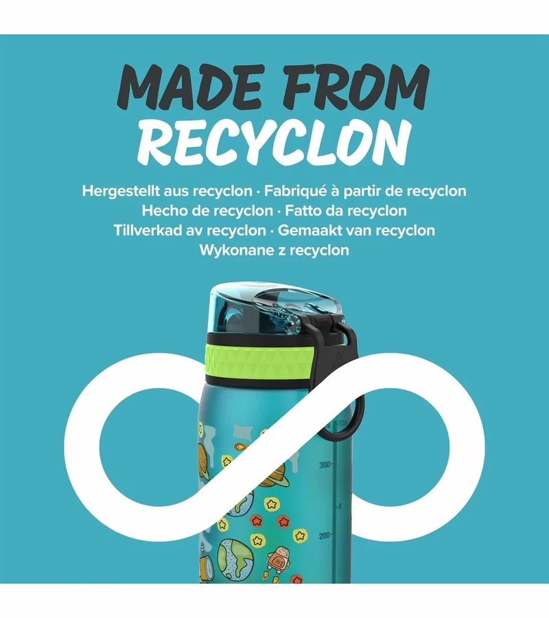 Made from BPA free RECYCLON, a transparent carbon neutral plastic partly made from plants. RECYCLON dramatically reduces CO2, and with a low processing temperature is also energy efficient in production processing.Â