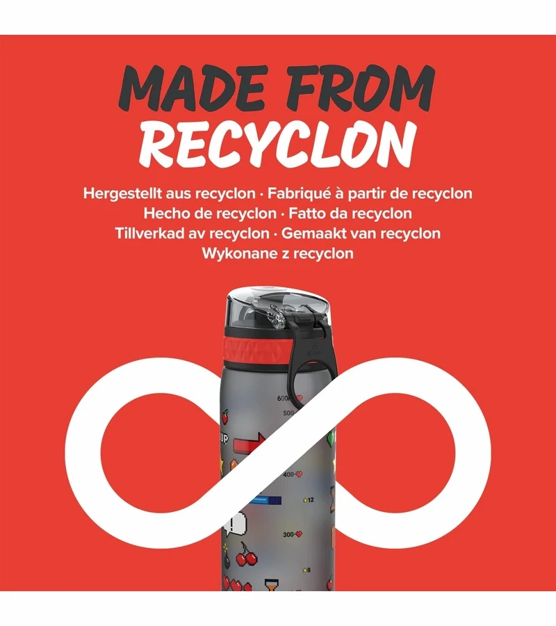 Made from BPA free RECYCLON, a transparent carbon neutral plastic partly made from plants. RECYCLON dramatically reduces CO2, and with a low processing temperature is also energy efficient in production processing.