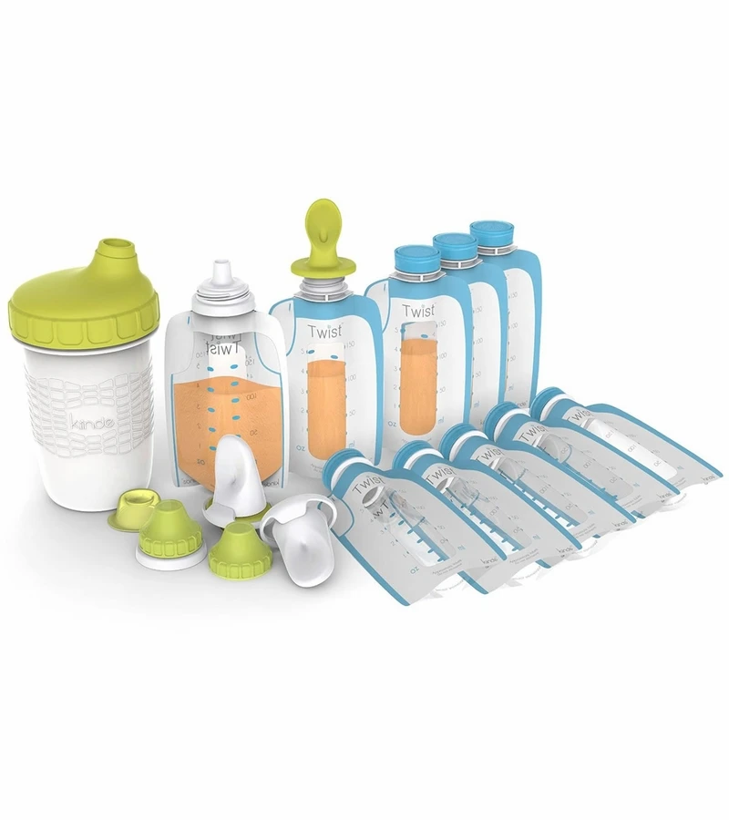 All components of the Foodii and Twist feeding systems are BPA, PVC, latex, and pthalate-free. Squeeze Snacks help to eliminate messes and dirty dishes – pouches can be discarded (recycled!) after use. Snack Spouts? and Squeeze Spoons? can be re-used for future feedings, and are dishwasher, steam, and microwave safe.