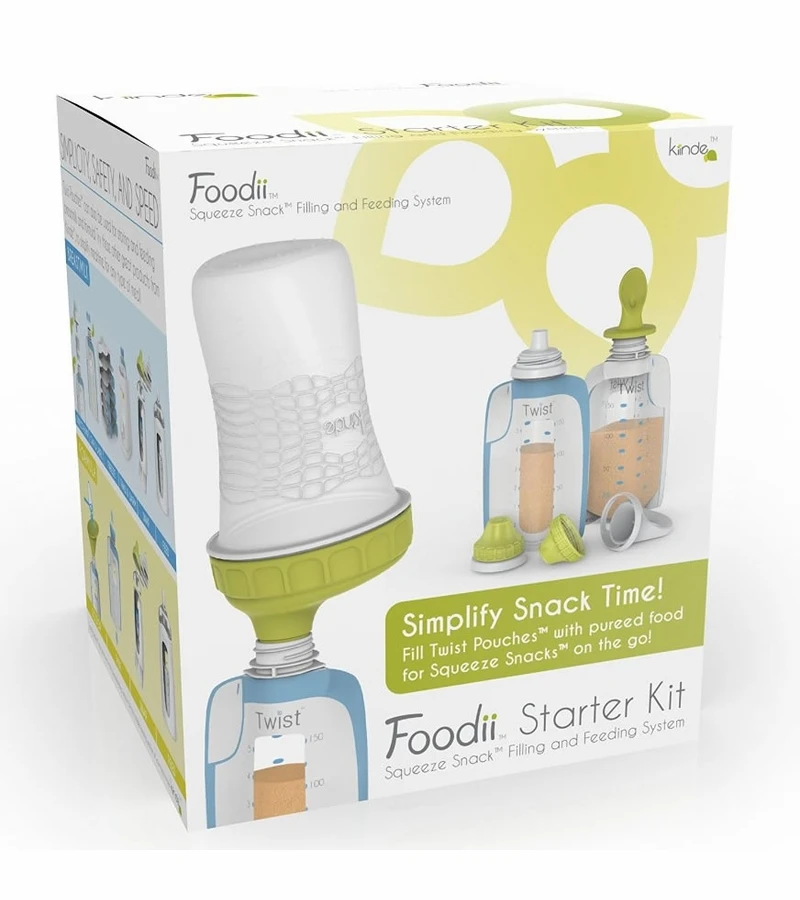 Puree your own healthy baby meals using your blender, pour into the wide-mouthed Foodii Filler, then squeeze the Filler to fill Twist Pouches? or Foodii? Pouches with healthy, nutritous snacks, mess-free!