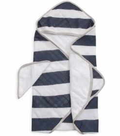 Little Unicorn Cotton Hooded Towel & Washcloth – Navy Stripe