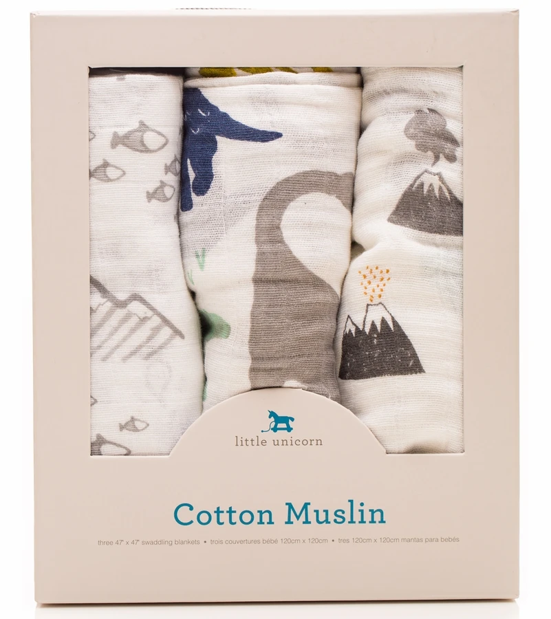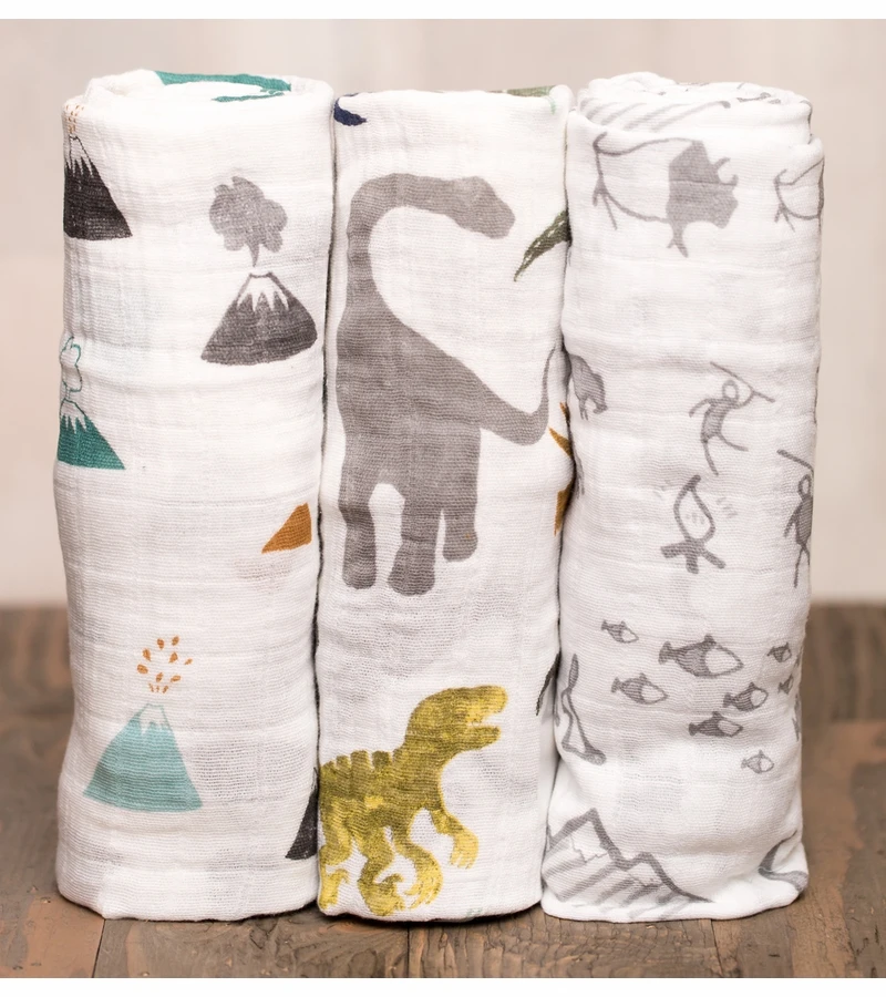 - Set includes Cave Art swaddle, Dino Friends swaddle, and Lava Lava swaddle