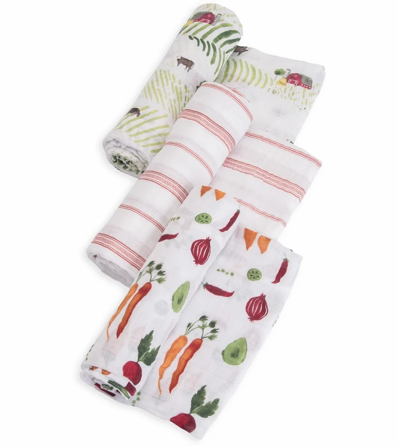 - Three 47″ x 47″ swaddling blankets