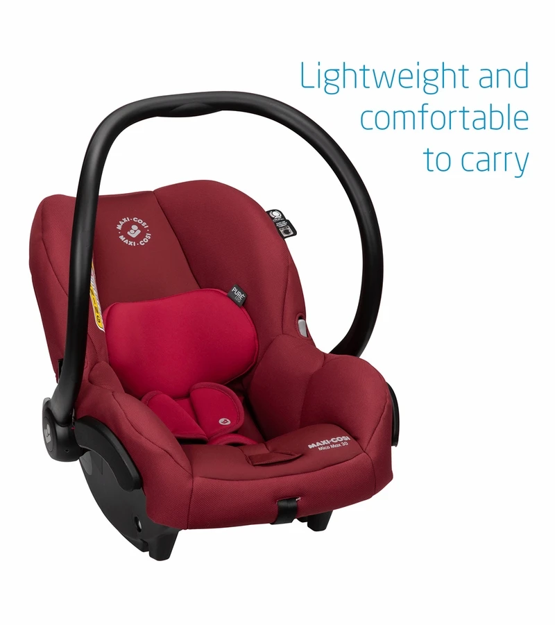 Baby will enjoy riding in the Mico 30 infant car seat, featuring superior comfort and safety from 5 to 30 pounds. It’s one of the lightest infant car seats, and easy for parents to carry with a contoured handle. The Cozi-Dozi™ head insert provides extra support for infants. Its expandable canopy with flip-out visor offers maximum UV protection. The seat pad removes easily and goes in the washer and dryer for a quick clean. It also includes an adjustable base with LATCH for a better fit in your car.