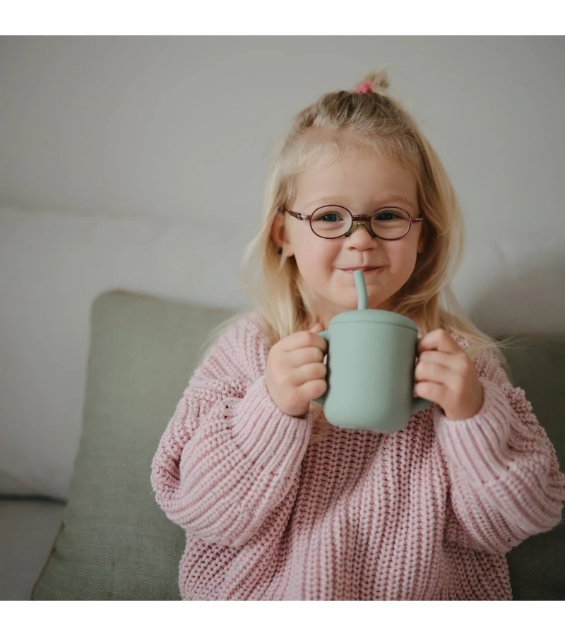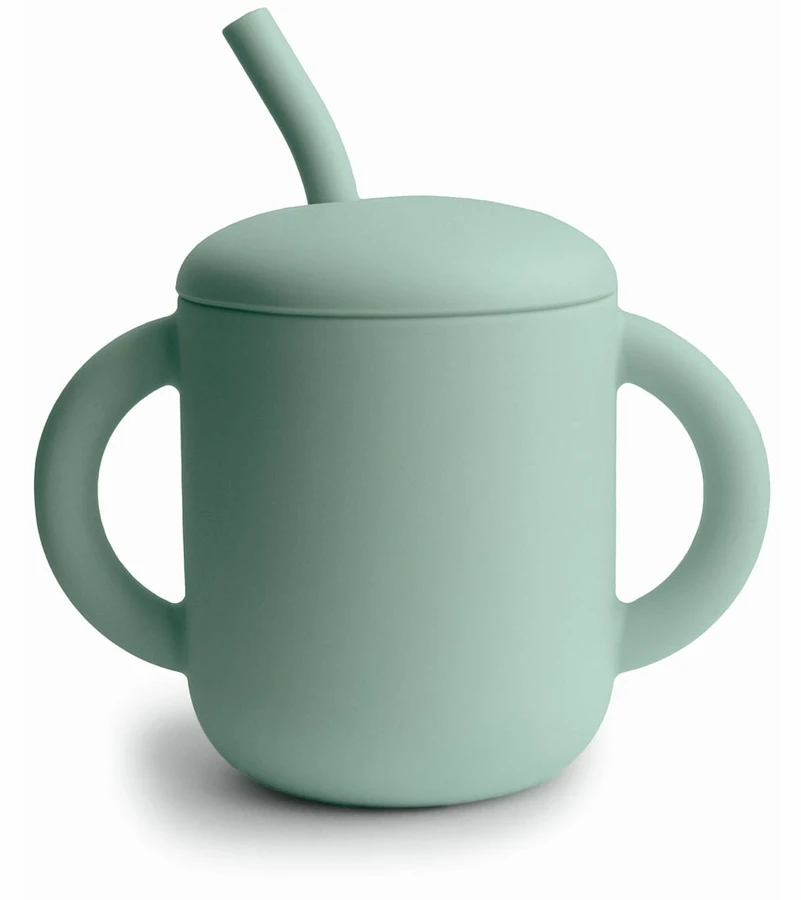 Mushie Silicone Training Cup + Straw – Cambridge Blue