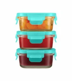 Innobaby Preppin’ Smart EZ Lock Glass Container, Rectangle, 3 Pack – Aqua
