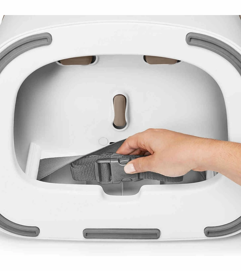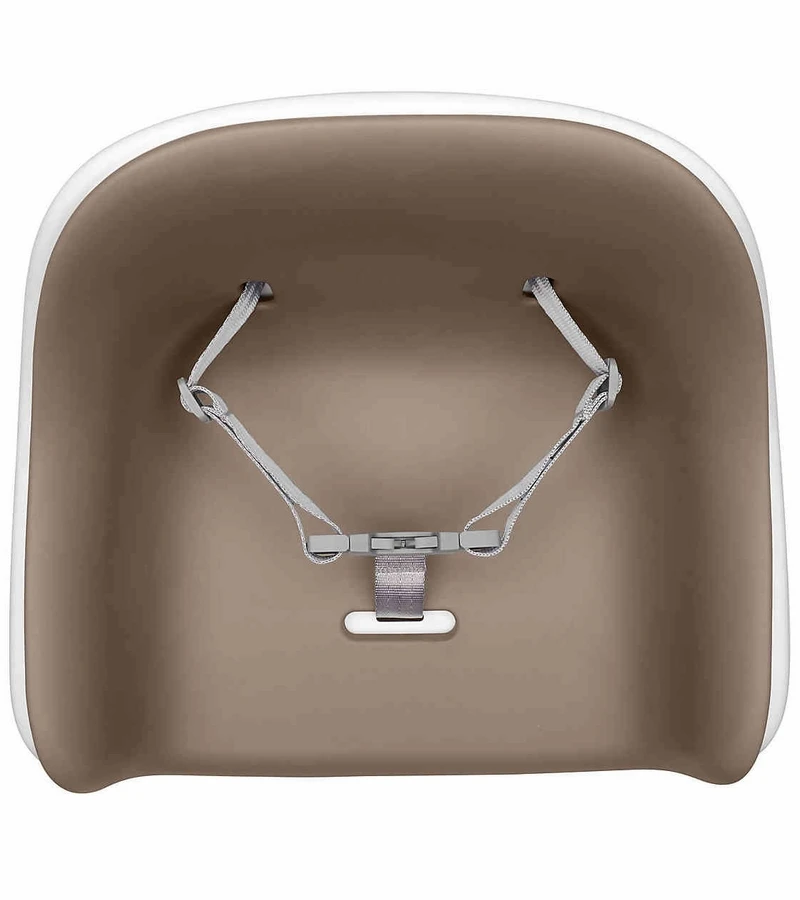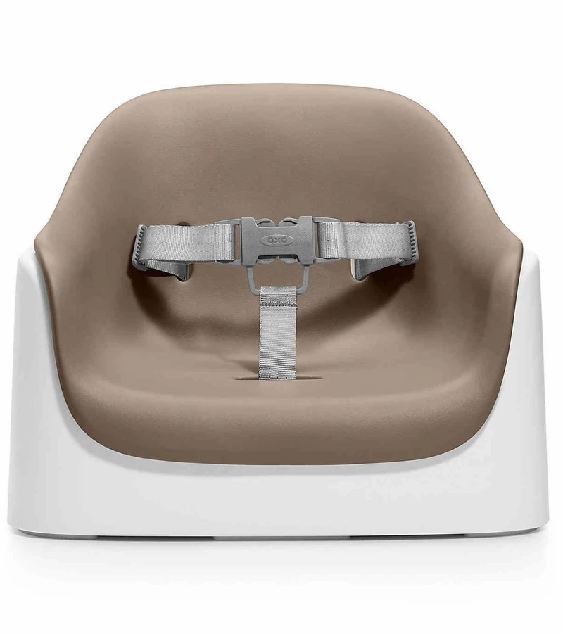 The OXO Tot Nest Booster Seat is a Booster Seat that will bring kids to the family table from as young as nine months. The Nest Booster Seat was designed with a soft, removable cushion, as well as a high back and sides, to make any grown-up chair comfortable for your little one. It was also designed to be easy to clean and store, to make the after-meal clean up comfortable for you. The 3-point harness keeps even the wiggliest tot secure, and is adjustable for growing kids. Two side-release buckles keep kids securely strapped in (and keep them from escaping!). The back and bottom chair straps are adjustable for a secure fit on different chair styles and sizes and the non-slip feet keep the Booster Seat stable while protecting chairs from scratches. The built-in handle allows for easy transport, and the straps store neatly in a compartment under the Booster Seat when not in use. Ages 9+ months.