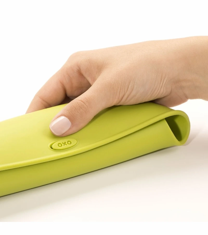 - Wide, soft, food-safe silicone pocket effectively catches crumbs