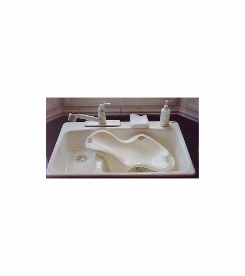 The PRIMO Infant Bath Seat is designed to hold an infant from up to 18 pounds and 28 inches long. The upper portion of the PRIMO Infant Bath Seat is designed to extend over the top edge of a sink in order to fit almost all kitchen sinks. A soft baby towel can be used to cushion a baby in the reclining position if the Infant Bath is too large at first for your newborn baby.