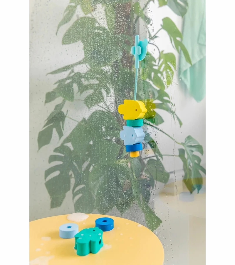 Quut Beedi are brightly coloured lacing beads in soft EVA foam. Thanks to the larger shape they are perfect for smaller hands! Stimulate your kids’ cognitive ability and enhance their hand-eye coordination. Use the suction cup to hang your kid’s creation on your bathroom wall and give the room a kids friendly touch. Different shapes and colours = Endless variations