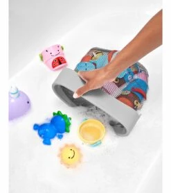 Nobody puts Moby in the corneruntil now! With a space-saving corner design, our easy-to-clean bath toy storage bag keeps toys organized and out of the way. Plus, it fits tons of toys to provide oceans of fun for kids.