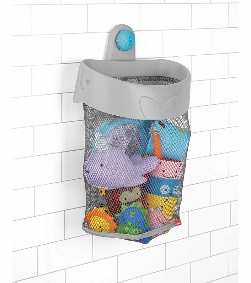 Scoop, dry and store all your little one’s tub toys with our handy mesh bath toy organizer. Designed with a wide opening at the top, it’s easy to scoop bath toys directly out of the water. The included hook with extra-strong suction power makes it a cinch to hang on your tub’s tile or glass surface for quick and easy draining—all neatly stored until next time.