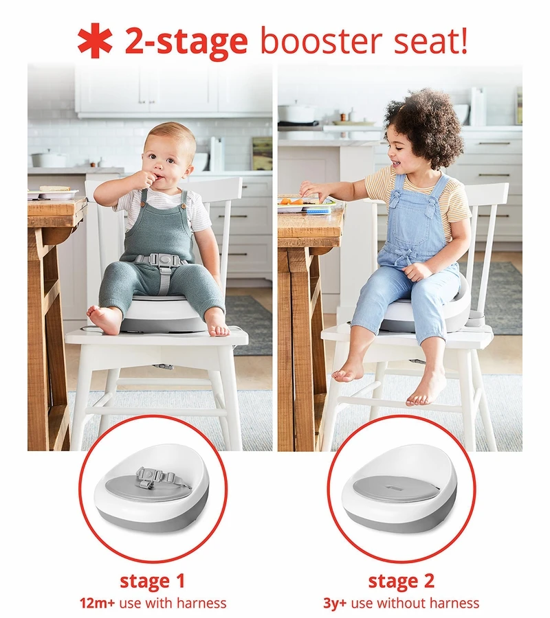 Streamlined and comfy, our modern booster seat gives little ones the lift they need—at home or on-the-go. Designed for 2 stages of use—from baby to toddler—the 3-point harness keeps your youngest ones secure, and it’s easy to remove for older kids. An adjustable chair strap and slip resistant base prevent slipping and sliding, while the removable seat cushion is easy to clean. Lightweight and portable, it’s ideal for travel, dining out and more.