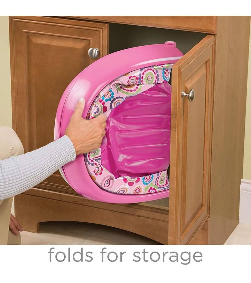 EasyStore Comfort Tub offers versatility and convenience for bathing your little one. The tub folds easily and compactly for storage and travel. The large tub includes an inclined positioner that can be removed as your baby grows. The inflatable base provides an extra soft, padded cushion for your little one.