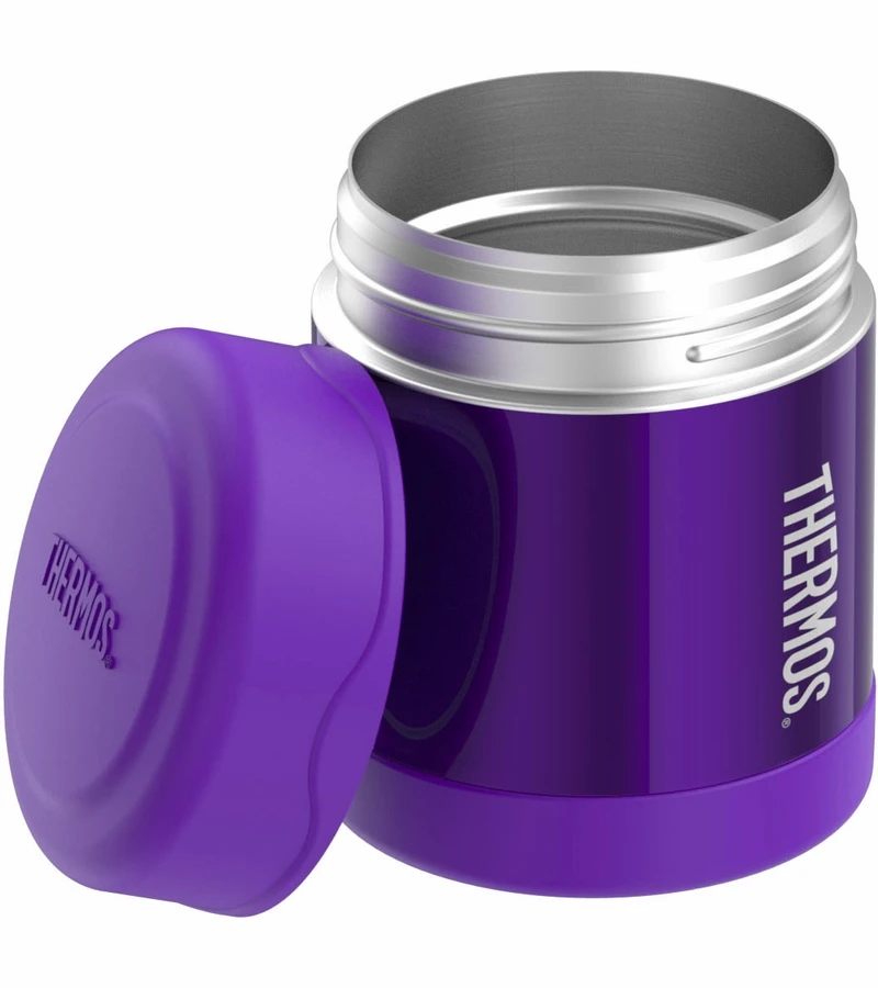 Perfect for packing in a school lunch, the compact and lightweight 10-ounce FUNtainer? food jar from Genuine Thermos? Brand is a great choice for keeping foods and snacks at their optimal temperature. Thermos? vacuum insulation technology and durable double wall stainless steel construction will keep food hot for up to 5 hours or cold for up to 7 hours. The wide mouth design makes it easy to fill, eat from and clean.