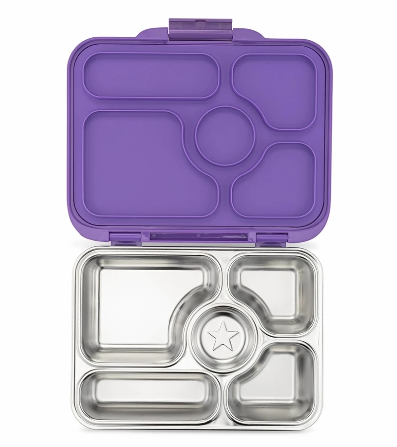 Yumbox Presto Leakproof 18/8 grade Stainless Steel Bento is designed for kids and adults. The 5 compartment stainless steel tray makes it easy to pack a nutritious lunch for work, school, sports and travel.