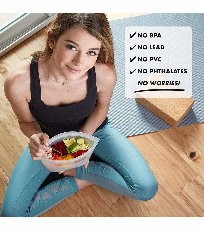 - Made in the USA! 100% pure non-toxic platinum silicone is completely free of BPA, lead, PVC, latex and phthalates. They wonโt leach harmful chemicals like plastics can. The only containers that stand up, stay open and zip shut!